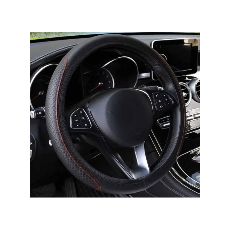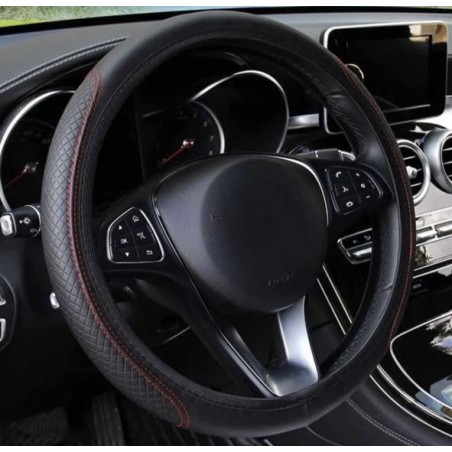 Black steering wheel cover with red stitching ___150G (7118)