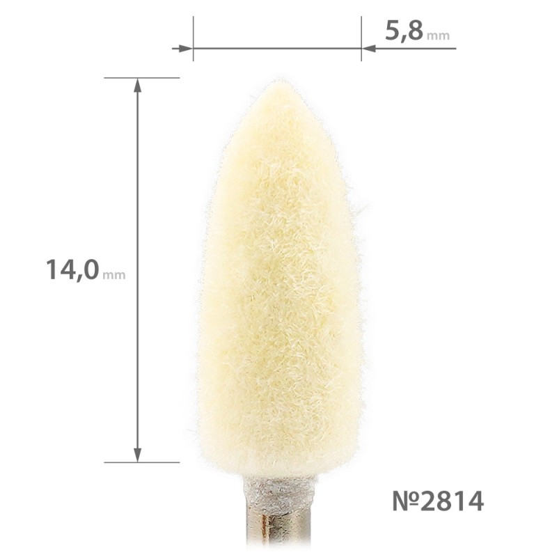 Felt attachment for polishing the nail plate and obtaining a deep gloss. When polishing, add cuticle oil to the nail. After polishing, the nail plate acquires a healthy and well-groomed appearance. Due to the friction of the fibers during rotation, the attachment heats up, so polishing should be carried out at low speeds, up to 10 thousand rpm.