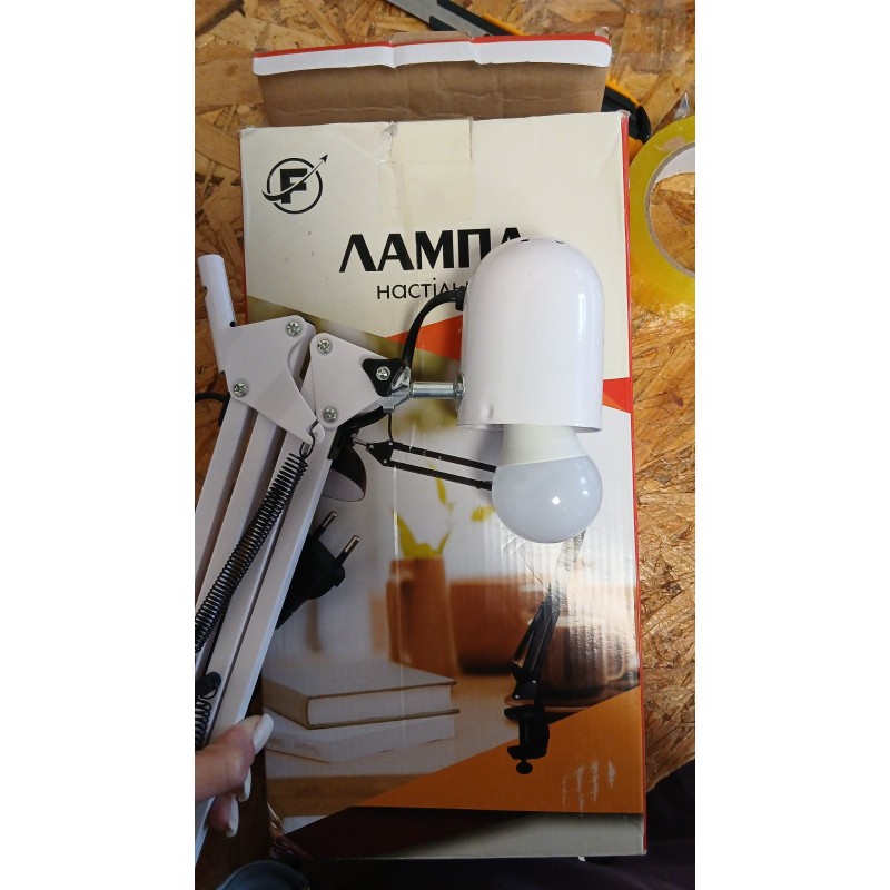 УЦЕНКА!!! БЕЗ ПЛАФОНА! Белая настольная лампа с длинной рукоятью на зажиме к столу (6844)